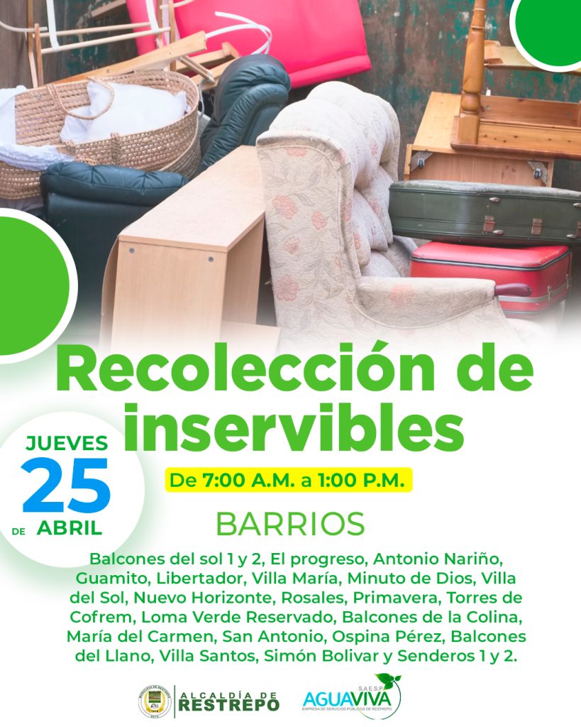 Atención próxima jornada de recolección de inservibles los días 24 y 25 de abril.
