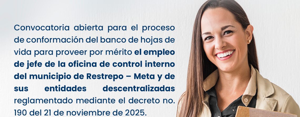“POR MEDIO DEL CUAL SE REGLAMENTA Y ESTABLECE EL PROCESO DE CONFORMACIÓN DEL BANCO DE HOJAS DE VIDA PARA PROVEER POR MÉRITO EL EMPLEO DE JEFE DE LA OFICINA DE CONTROL INTERNO DEL MUNICIPIO DE RESTREPO – META Y DE SUS ENTIDADES DESCENTRALIZADAS” o ingresa al siguiente link https://www.restrepo-meta.gov.co/normatividad/decreto-no-109-21-de-noviembre-de-2025